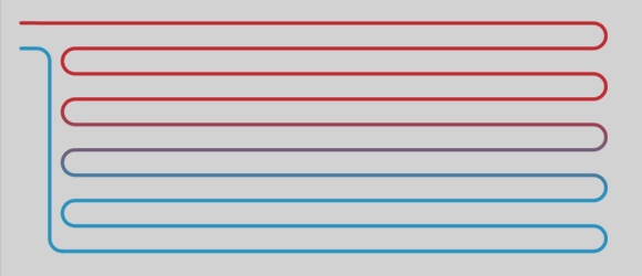 Când conductele de alimentare și de evacuare ale sistemului sunt așezate una lângă cealaltă într-un model de coajă de melc, întreaga podea (acoperire) va fi încălzită uniform.